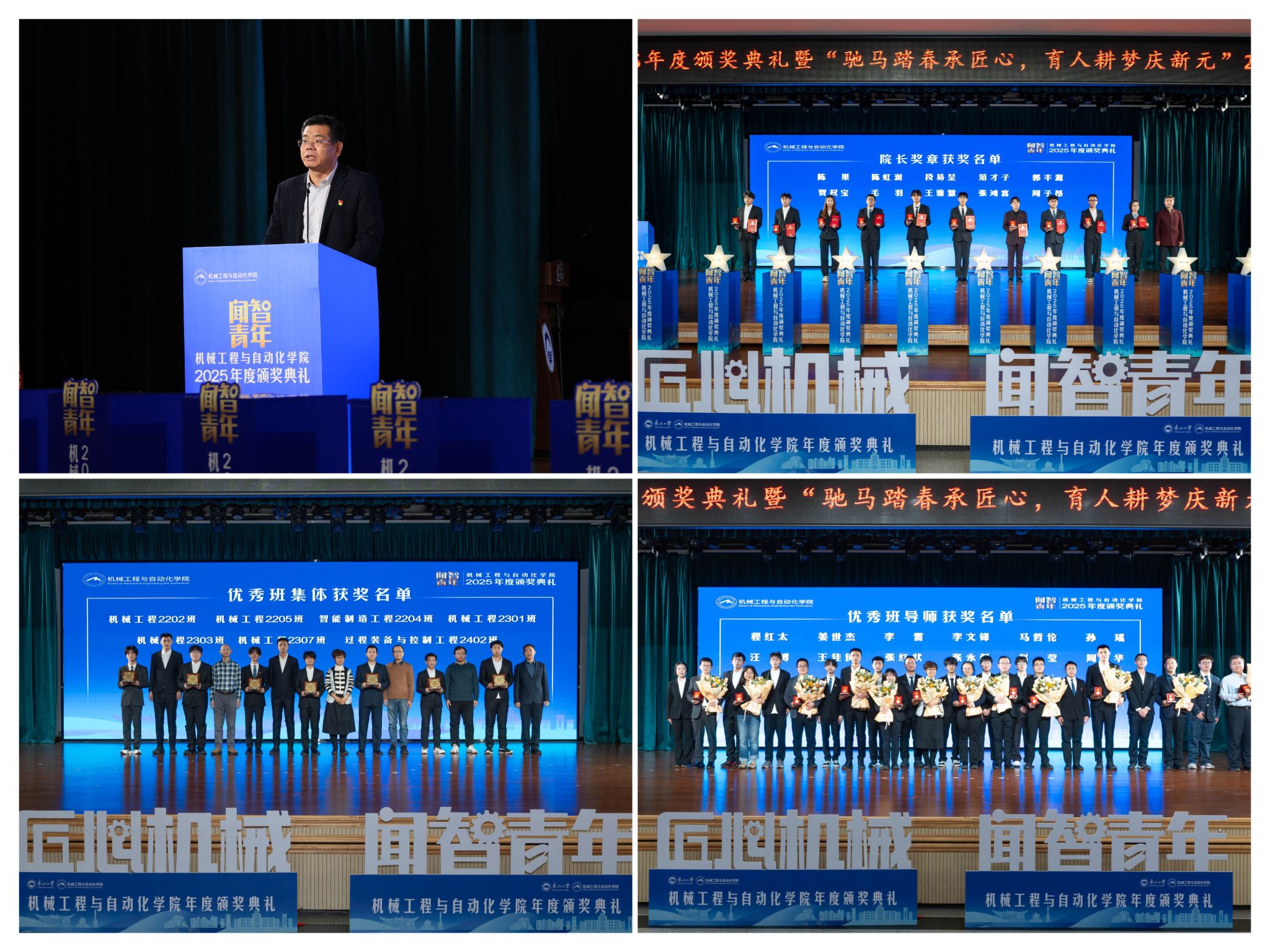 “院长章”获得者代表毛羽连系科研竞赛取意愿办事履历,讲述了“道阻且长,行则将至”的成长;“优良班集体”获代表豆煜轩分享了班级凝心聚力、共建优秀学风的活泼经验。正在“闻智匠心 共话青蓝”出格环节,优良班导师马哲伦取所带班级学生代表刘定佳同台交换,从分歧视角展示了师生间思惟引领、学业互帮、讲授相长的温情互动,彰显了育人一线的深挚交谊取结实成效。